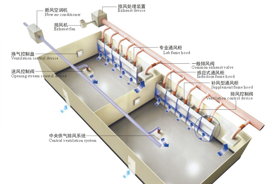 空調(diào)系統(tǒng)是以空氣調(diào)節(jié)為目的而對(duì)空氣進(jìn)行處理、輸送、分配,并空盒子其參數(shù)的所有設(shè)備、管道及附件、儀器儀表的總合。在空調(diào)系統(tǒng)的分類(lèi)上有許多方法,較多的是以負(fù)擔(dān)室內(nèi)熱濕負(fù)荷所用的介質(zhì)分為全空氣系統(tǒng)、全水系統(tǒng)、空氣-水系統(tǒng)和冷劑系統(tǒng)。